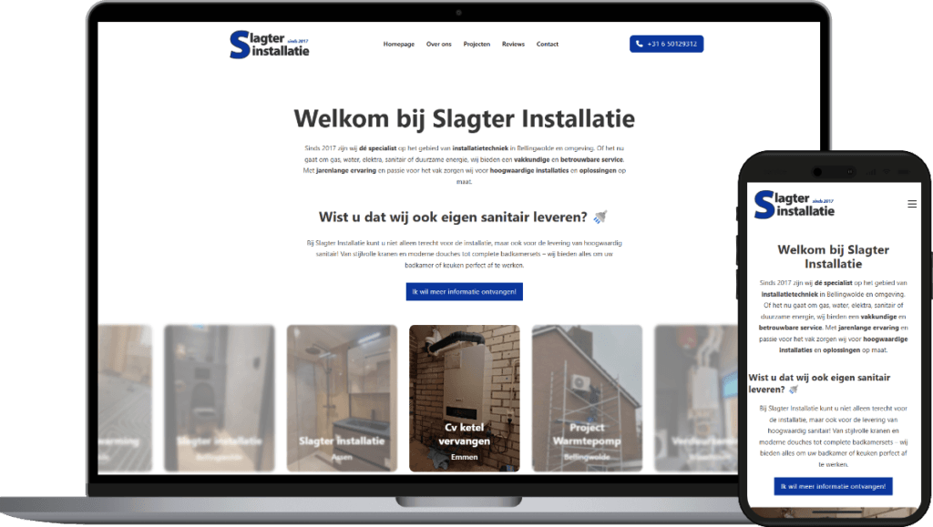 Voor Slagter Installatie hebben we een moderne en professionele website ontwikkeld die perfect aansluit bij hun expertise in installatie- en onderhoudsdiensten. Met deze nieuwe online omgeving kunnen zowel particuliere als zakelijke klanten eenvoudig ontdekken welke oplossingen Slagter Installatie biedt.